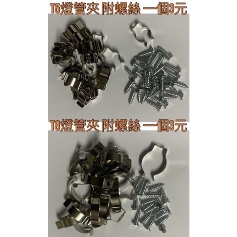 商品名稱 T5燈管 T8燈管 專用燈勾 附螺絲 燈管夾 燈夾 固定夾 固定勾 日光燈夾 LED燈夾 。 商品價格 每個$3元。 產品詢問 會亮的幾乎都有 歡迎詢問 高雄市滿300元可自取