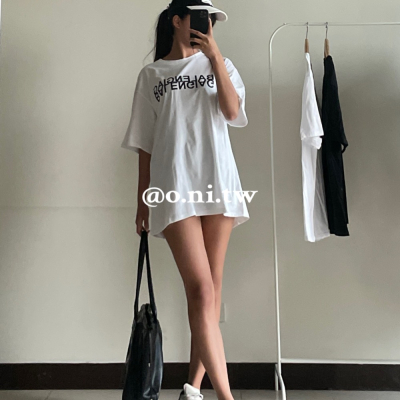 【o.ni.tw-現貨#0014】英文顛倒Over size男友衣 黑色 白色 英文 顛倒 反向 上衣