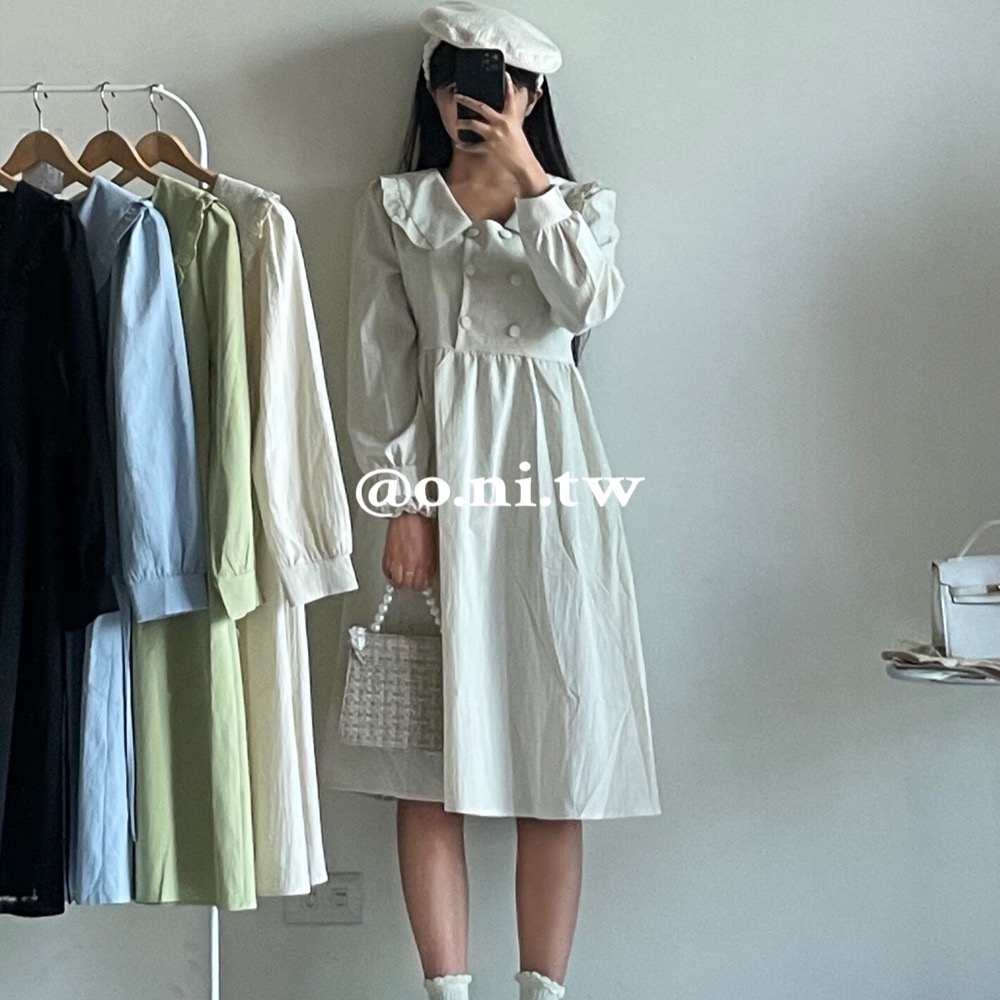 【o.ni.tw-現貨+預購#0029】日系春季新品馬卡龍色系連身裙 長裙 白色 藍色 綠色 黑色 韓日