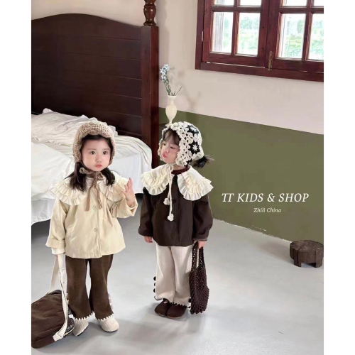 OHOH北鼻童裝 波浪翻領白杏色外套