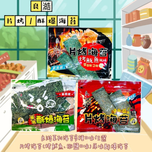 良澔 原味酥爆海苔/片烤海苔 - 烤魷魚 / 椒鹽口味 大人小孩都愛吃
