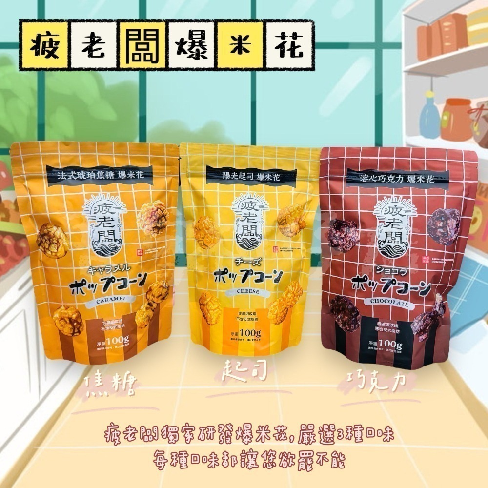 即期良品|惜福省荷包 👛 台灣🇹🇼 疲老闆嚴選爆米花 法式焦糖 溶心巧克力 陽光起司 爆米花 100g/包