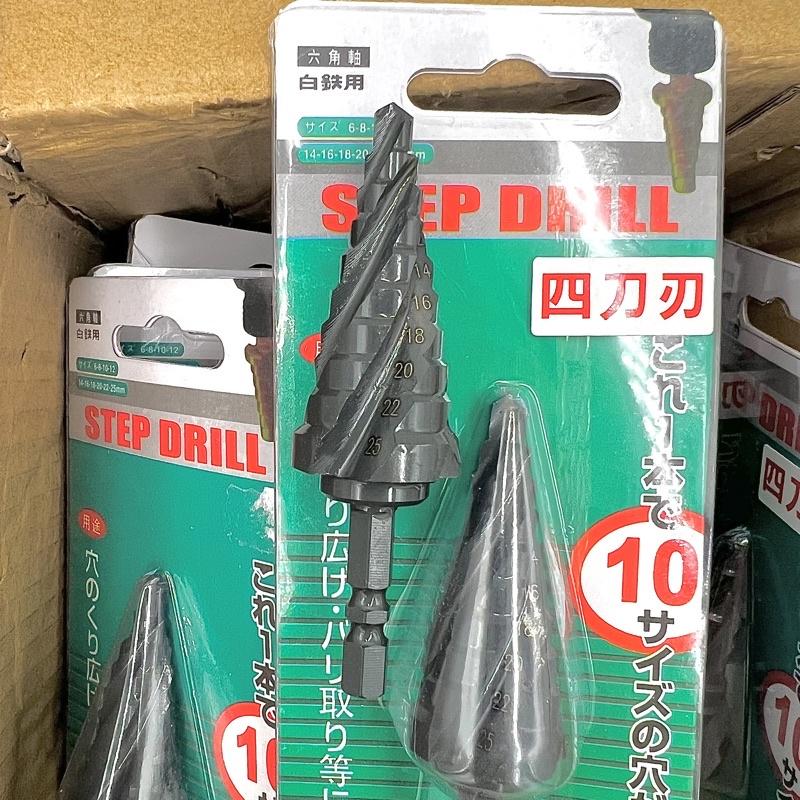 含稅 🔥新品 四刀刃 階梯鑽 含鈷 梯形圓穴鑽 螺旋 六角軸 四刃 白鐵用3-13mm 特價中 6-25 6-35