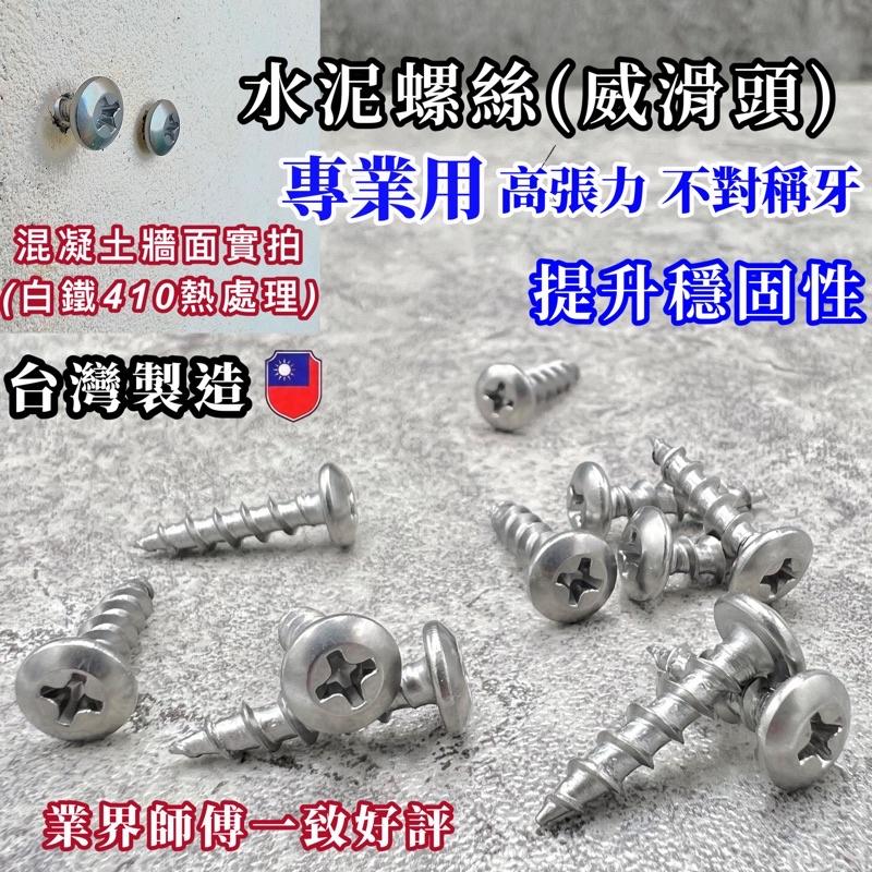 【圖片所有 盜圖必究】 ✅正台灣製造 水泥螺絲釘 白鐵410 ✅高張力螺絲,高承受力 ✅粗牙 威華頭 ➽ 410 白鐵螺絲(一般業界用 防鏽力高) 產地:台灣🇹🇼 【工貝材質】 高張力鋼材,施工不易斷頭 410白鐵款 - 高張力- 螺牙無毛邊不刮手,不易崩牙 好鎖防鬆脫,可防止水泥鬆散而脫落 - 十字溝設計- 夠寬、夠深,不易滑牙 緊密吻合十字起子頭 【適用在】 水電、冷凍空調工程、木裝潢工、鐵工、鋁門窗業等多種行業、家庭DIY吊飾 【施工步驟】 1.先在水泥牆鑽孔(需使用直徑3.2mm、一分、1/8、3.4mm水泥鑽頭) 2.不需打塑膠塞(壁虎),直接鎖上水泥螺絲使用即可