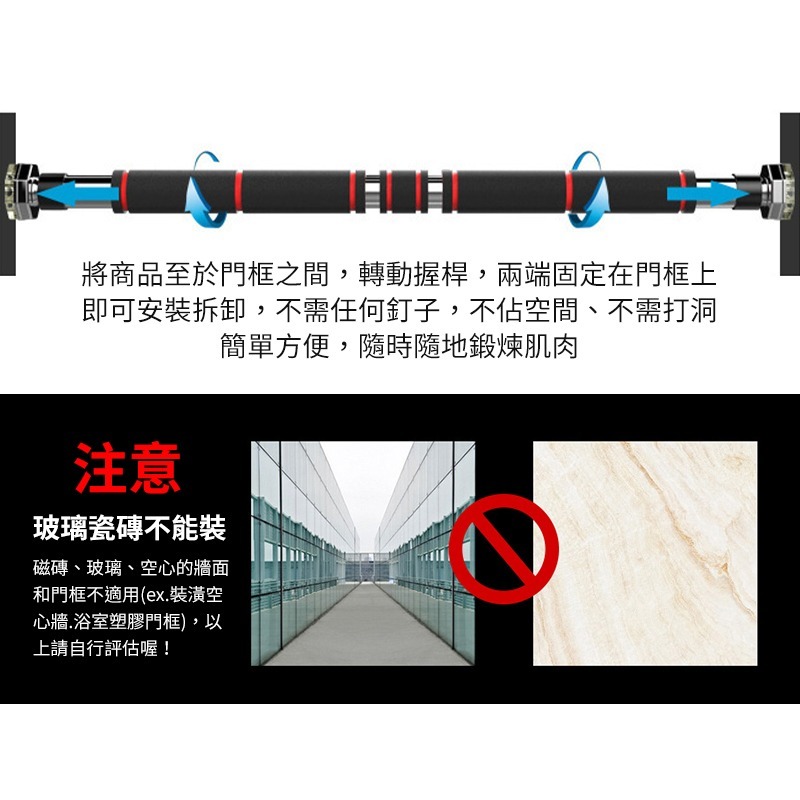 ▲使用門上單槓難免因為摩擦力關係,會在門框或牆壁上造成使用痕跡,是否可以接受要請好顧客們自行評估喔!