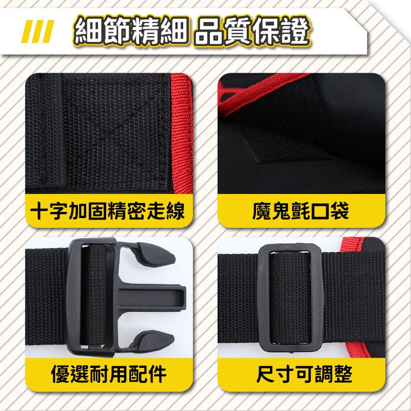 腰帶可調節設計,適合各種腰圍,佩戴舒適不緊繃。腰包擁有超大容量,能夠裝載各種工具,方便你在工作中隨時取用。