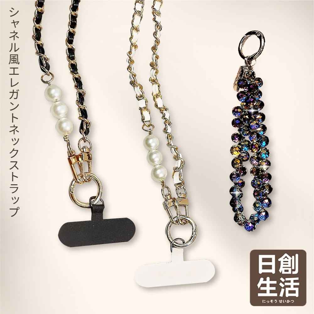 ★款式:小香風掛脖繩 黑金 / 小香風掛脖繩 白金、水晶風手腕繩 (深紫)