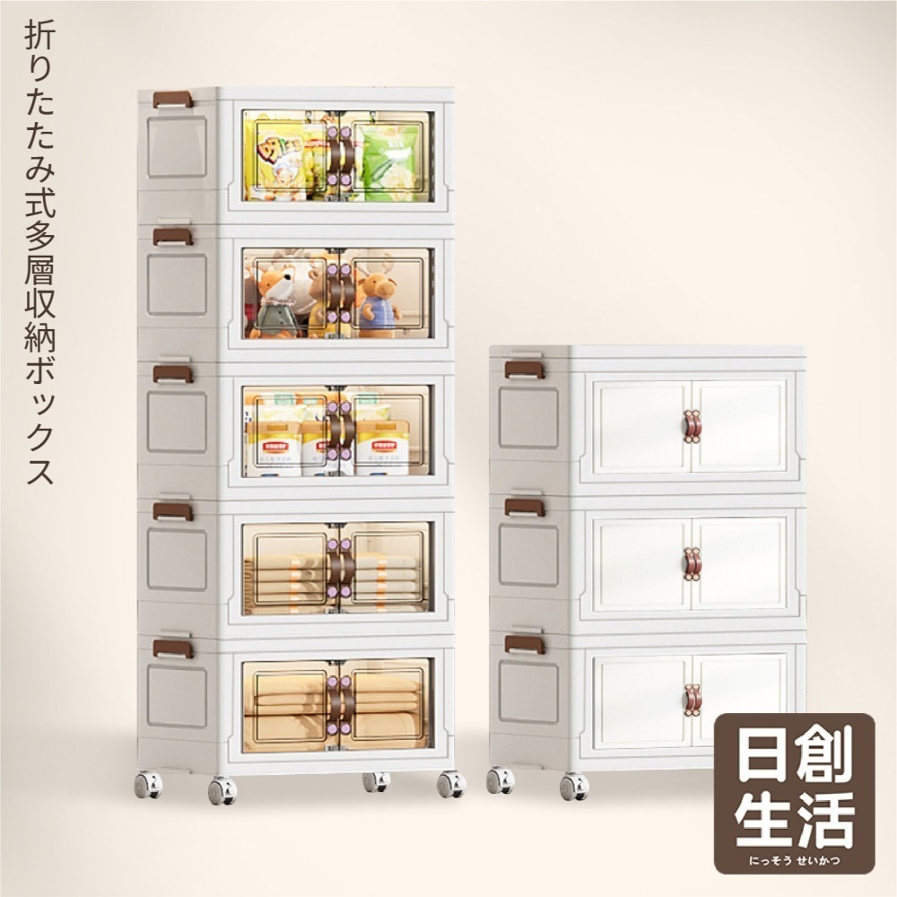 摺疊收納櫃 帶輪零食折疊櫃 雙開門收納櫃 折疊收納櫃 折疊收納箱 衣物收納箱 儲物櫃 玩具收納箱