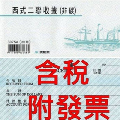 【含稅附發票】美加美 3075A 西式二聯收據 (規格同 CHA SHIN 加新 2N075 非碳二聯西式收據)
