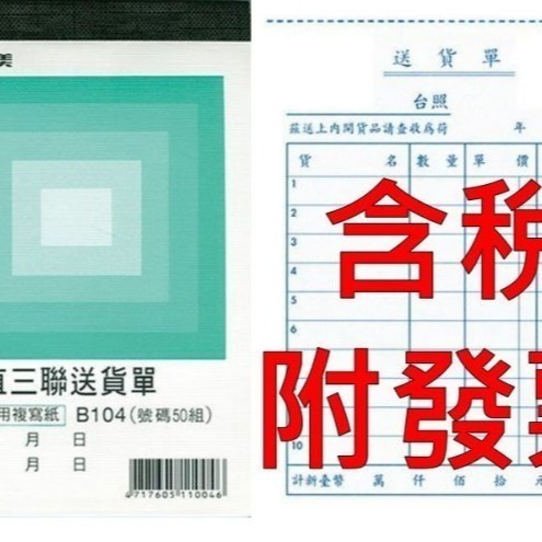 【含稅附發票】美加美 B104 72K直三聯送貨單 (規格同 CHA SHIN 加新 2N5082 直三聯送貨單)