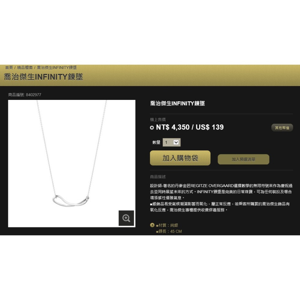 [長榮航空機上免稅現貨 免運請聊聊]喬治傑生INFINITY鍊墜