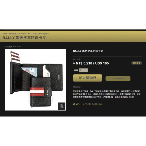 #長榮航空 #機上免稅品 #BALLY 您的安全旅行夥伴,BALLY智慧錢包具備RFID防盜功能,以按鈕開合,結實的鋁盒可容納多達6張卡片。通過外部手柄可輕鬆拿取卡片,無需打開按鈕卡扣。這款皮革卡夾飾有標誌性的BALLY條紋,內裡還配有一個紙鈔夾和兩個卡片夾。 ■尺寸:高7.5×寬9.5×深2.5 CM