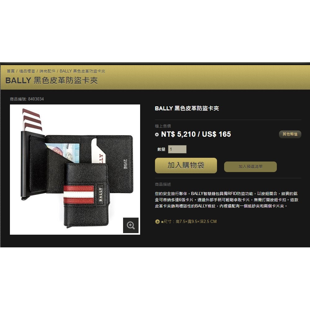 [長榮航空 代購正品] BALLY 黑色皮革防盜卡夾