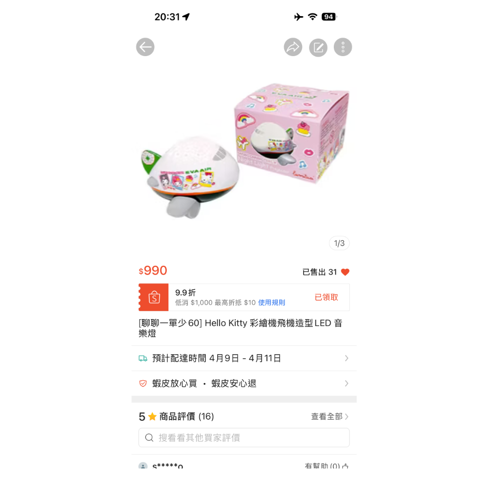 #長榮航空 #機上 #飛機 #夜燈 #寶寶 #hello kitty