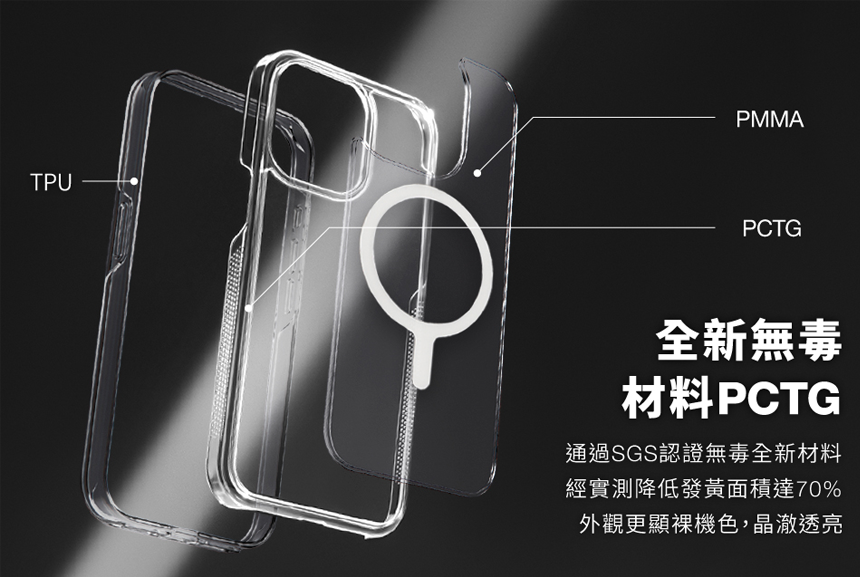 ★材料添加抗黃因子,有效降低日常造成的耗損,保持外殼透亮效果!