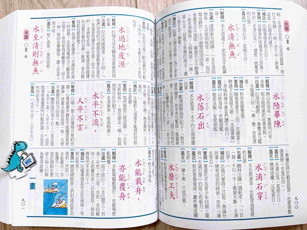 包含解釋、補註、實例、義近義反詞、辯析、異體等,體例完整、簡明易懂