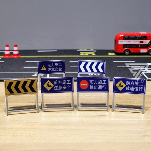 【台灣出貨】【道路施工警示路障玩具 仿真場景模型】減速慢行立牌 停車場配件 認知玩具 微縮模型 道路場景 微型攝影 號誌