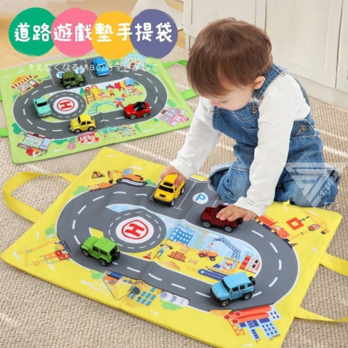 【台灣出貨】【道路場景遊戲墊手提袋/5款式】交通場景 停車場場景 城市樂園遊戲墊 可愛提袋 玩具車收納 交通遊戲墊