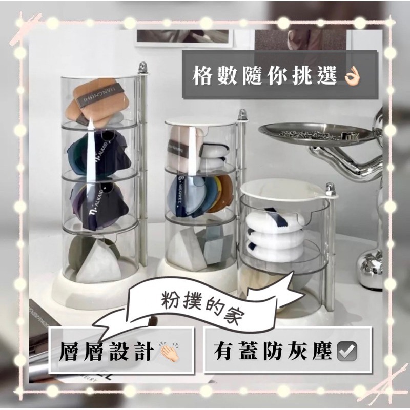 【台灣收納】❤️‍🔥現貨秒出網美推薦【簡約風】❤️‍🔥【粉撲收納盒】旋轉防塵美妝蛋化妝棉置物架桌面透明架子氣墊盒