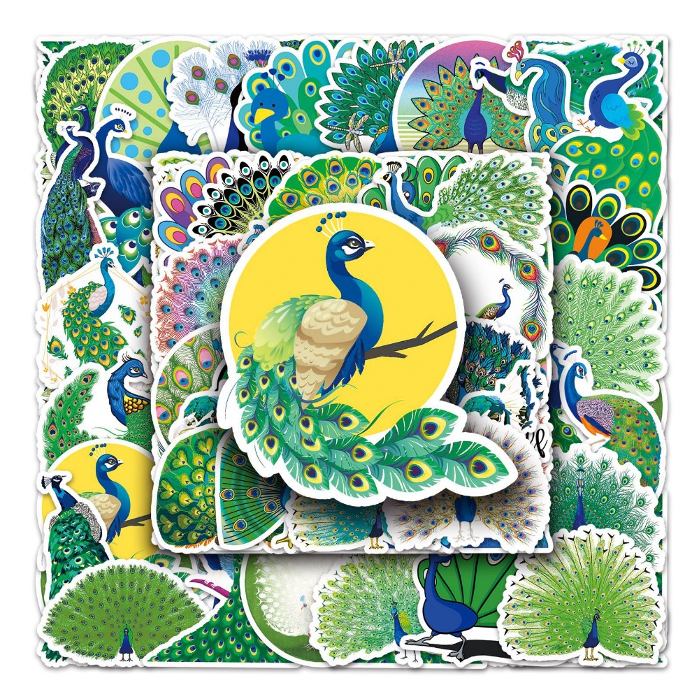 [預購]防水卡通貼紙 1份有50張 不重覆 孔雀