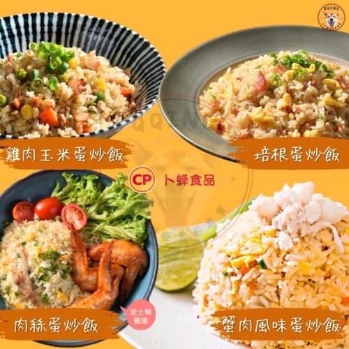 商品名稱:卜蜂炒飯 蟹肉風味炒飯、肉絲蛋炒飯、培根蛋炒飯、雞肉玉米蛋炒飯