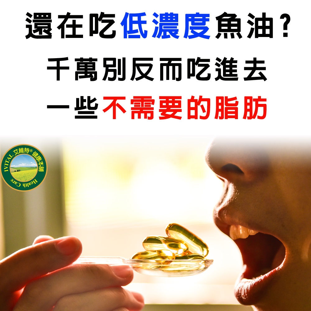 所以不要再說:買低濃度的魚油多吃幾顆就好了! 這樣您可能會也同時多吃進去許多不必要的脂肪。