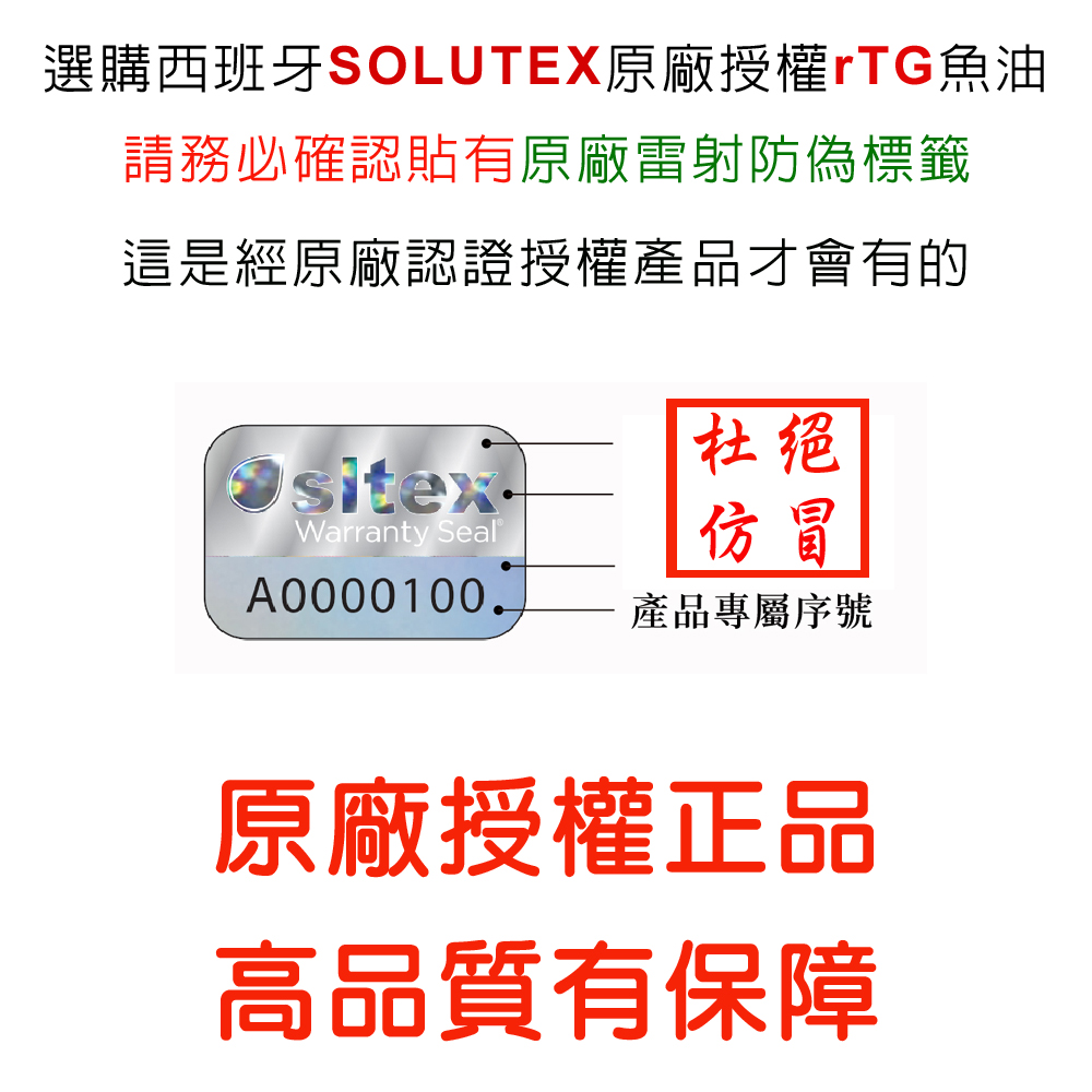 SOLUTEX生產的魚油,品質全程監控達醫藥級安全標準,取得全球數十項專利的SFE超臨界CO2萃取技術、SFC超臨界層析與CLEANTEX淨化科技,從提取、分離、純化、去味,直到提升萃取效能,全程採西班牙先進專利一段式連續製程,確保能隔絕氧氣、低溫萃取、不使用溶劑,經高倍濃縮萃取,以及第四道還原程序,有效維持魚油的天然魚體原形順式結構TG魚油。高濃縮、高效率、低熱量的補充, 打造出沒有魚腥味特高品質的「頂級超濃縮魚油」。