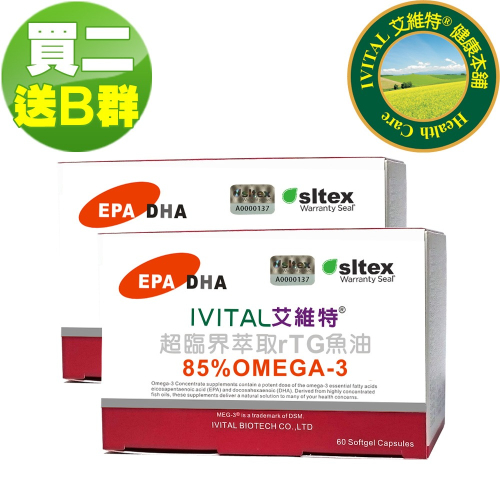 品名:IVITAL艾維特®85%超臨界rTG魚油(60粒)「2盒送B群X2盒組」