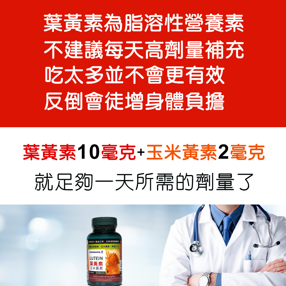 請留意:您購買的葉黃素產品如果宣稱有添加日本黑豆皮萃取物,請務必要確認是否有KUROMANIN®的原廠授權商標,不然有可能會買到只添加10毫克/粒,或是40毫克/粒的產品。