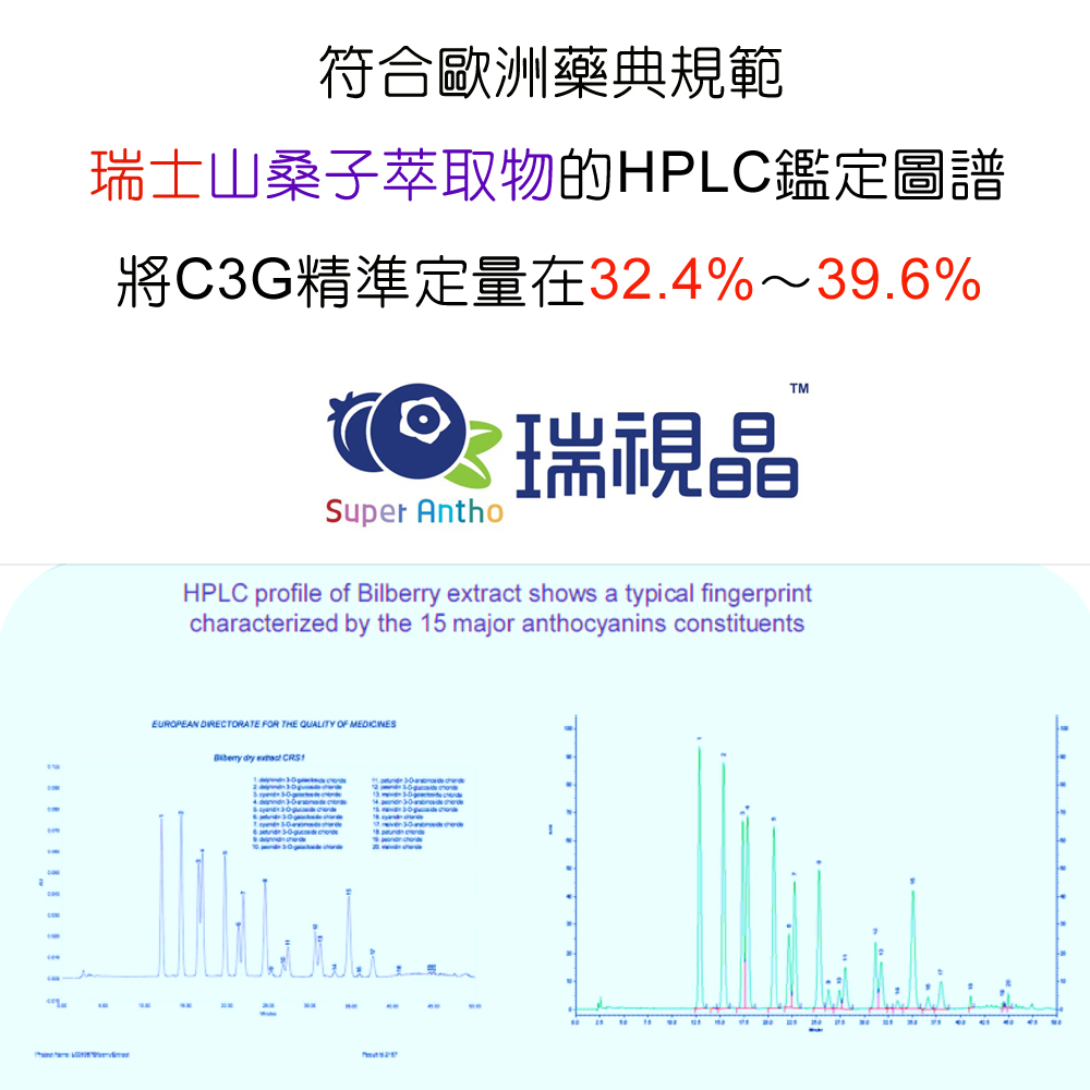 歐洲藥典指定矢車菊素C3G為花青素的檢驗指標物質,符合歐洲藥典規範