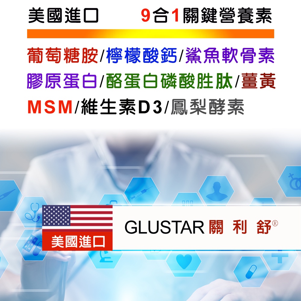 品名:美國進口GLUSTAR關利舒®葡萄糖胺膠原軟骨素加強錠