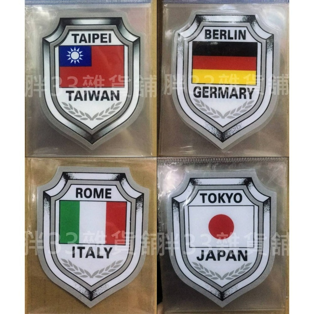 國旗徽章 (7*9cm) 台灣 義大利 日本 德國 國旗貼紙 汽車機車車用貼紙 防水貼紙 行李箱貼紙 10左