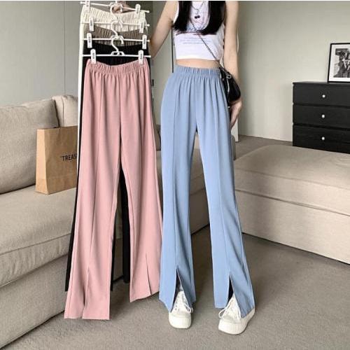 女款高腰顯瘦垂感開叉微喇叭長褲