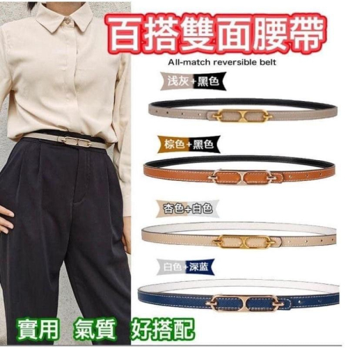 👏🏻🌟超級狂人吐血價🌟👏🏻 ❌市售一條皮腰帶190元起⋯⋯ 🔥這款是『雙面、雙色』都可以使用🔥 ‼️等於買一條,擁有兩條皮帶的概念‼️ ⭕️一條只要70元,雙面款 👍👍大推👍👍 🎁你買一條 = 買了兩條 🎁送禮自用兩相宜 ┎━━━━━━━━━━━━━━━━┒ 🔥  團 購 超 級 銅 板 價  🔥 ┖━━━━━━━━━━━━━━━━┚ 🌈網美身上絕對必備細皮帶、腰帶 ❤️夏天服飾,很需要皮帶、腰帶來襯托 ❤️往往多了一條腰帶、皮帶 ❤️你的穿搭馬上大幅加分💯 💥個人建議+2條,共有4個配色好穿搭 💥主要是超便宜完全不貴,生活條件好的美人真心建議包色 💮 棕黑、灰黑,什麼服裝百搭款 💮 杏白,穿洋裝、連身裙,小姊姊氣質風 💮 藍白,牛仔單寧配色,夏天必備色 ✔️這款可以當腰帶、皮帶都適用 ✔️皮帶在現代服飾進步,已經是個裝飾品 ✔️並不是需要皮帶才使用它了! ✔️而是一個搭配服裝的配件了 ✔️雙色配色,讓你穿戴搭配更方便 💯優質合金金釦 💯金色釦頭,油封保色 💯釦頭拆卸超方便 💯PU皮革、耐磨、不退色 💯穿搭畫龍點睛 💯經典時尚百搭 💯潮流必備款式 💯可調整長 ✅材質:皮革PU ✅寬度:1.4cm ✅長度:100cm ✅腰圍:90cm以下使用