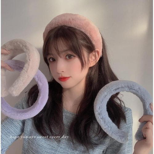 韓國糖果色毛絨絨無痛髮箍(一組2個)