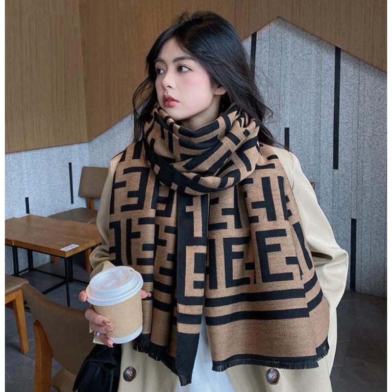 經典F牌雙面雙色羊絨流蘇圍巾