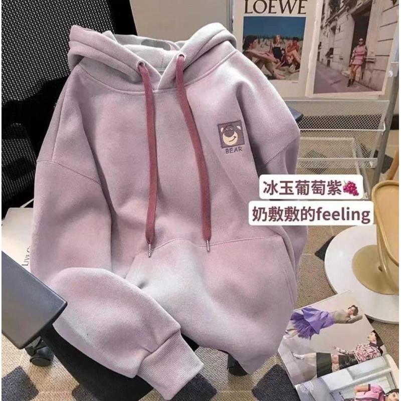 🌟✨全部都是刺繡✨🌟 胸前➕️袖口➕️帽子 🤘🏼都是刺繡-刺繡~ 🤘🏼尤其是帽簷,超級無敵可愛🈵️💖 💖爆單款💖超可愛~~💖 👀看過了〰️尖叫聲😚😚😚 ❤️太太太可愛了❤️❤️ ➡️穿上秒變大學生,一起可愛年輕一波👍🏻 ☃️秋冬❄️必備百搭款💯一定要有的帽T ✔️今年衣櫃絕對要有這件 👑穿起來時尚顯年輕,立馬減齡大學生👩‍🎓 👑連帽款式,帽上可愛的草莓熊表情👋🏻❤️ 👑上衣長度剛好在屁股上下的位置 👑下圍還有做鬆緊縮口設計,顯瘦的效果 👑寬鬆版型,大口袋還可以遮小肚肚 👑秋冬火鍋吃再多都不怕🤣 ✅抓絨 ✅材質:滌綸 ✅衣長70cm / 胸圍120cm ✅均碼款 :75kg以下可穿