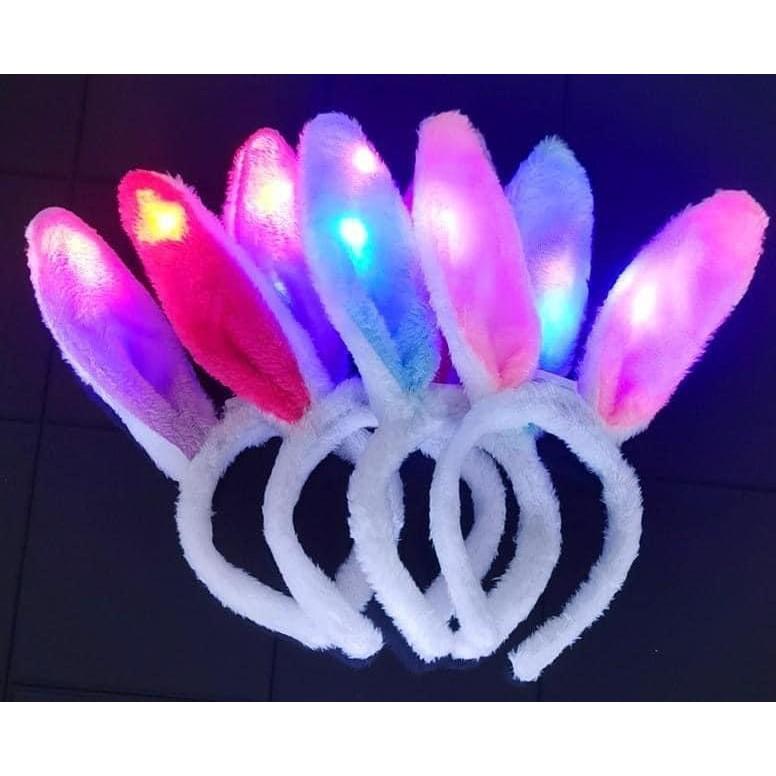 LED七彩發光可彎曲兔耳朵頭箍(一組3個)