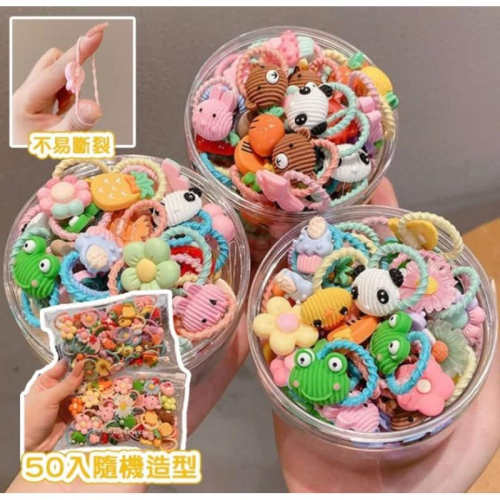 兒童50入可愛動物水果不傷髮髮繩