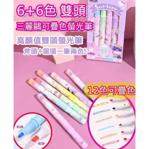 三麗鷗可疊色6+6色雙頭螢光筆(一組2盒)