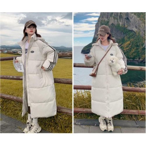 韓版三條槓雙頭拉鏈過膝“長版”羽絨外套