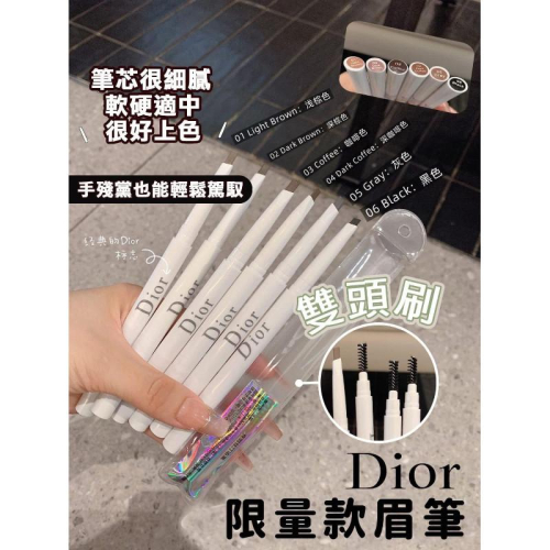 ✔️01:淺棕色 ✔️02:深棕色 ✔️03:咖啡色 ✔️04:深咖啡色 ✔️05:灰色 ✔️06:黑色 💄✨Dior 高級感必收✨💄 🆘雙頭設計,斜頭筆+刷🆘 🙌雙頭設計,一筆兩用 🙌先畫出眉紋路 🙌再用眉刷加強~ 🙌超方便的~ 🚫防水💦🚫防汗,持久不脫妝 ✏️自然顯色不易暈染 ✏️質地順滑新手也好畫 ✏️不怕大出油 👜隨身攜帶出門補妝方便 ⭕️彩妝新手零失誤⭕️ 💖雙頭式設計眉筆 💖斜角切面流暢筆頭 💖另一頭則是刷出自然感的眉刷 💖筆頭滑順好畫容易易上手 💖輕輕鬆鬆就顯色~ 🌟一筆即刻上色,好暈染 🌟一頭眉筆,勾勒立體輪廓 🌟另一頭眉刷自然柔和暈染 🌟持久眉型,全天精緻不掉線 👩約會妝容精緻耐看 💼上班補妝秒提氣色 🎉聚會派對眉型超在線