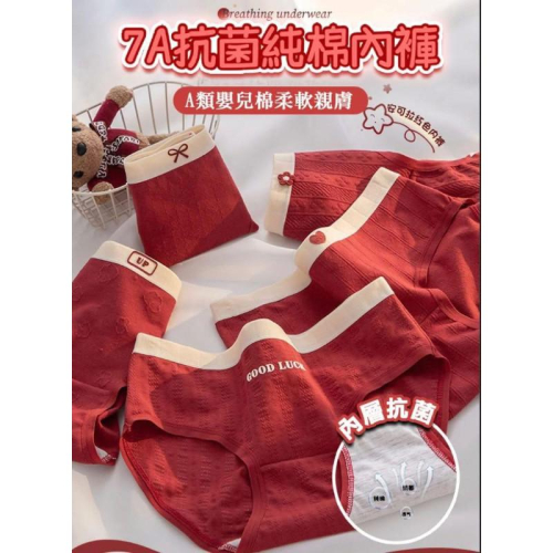 女款過年開運7A抗菌純棉紅色內褲(一組4件)