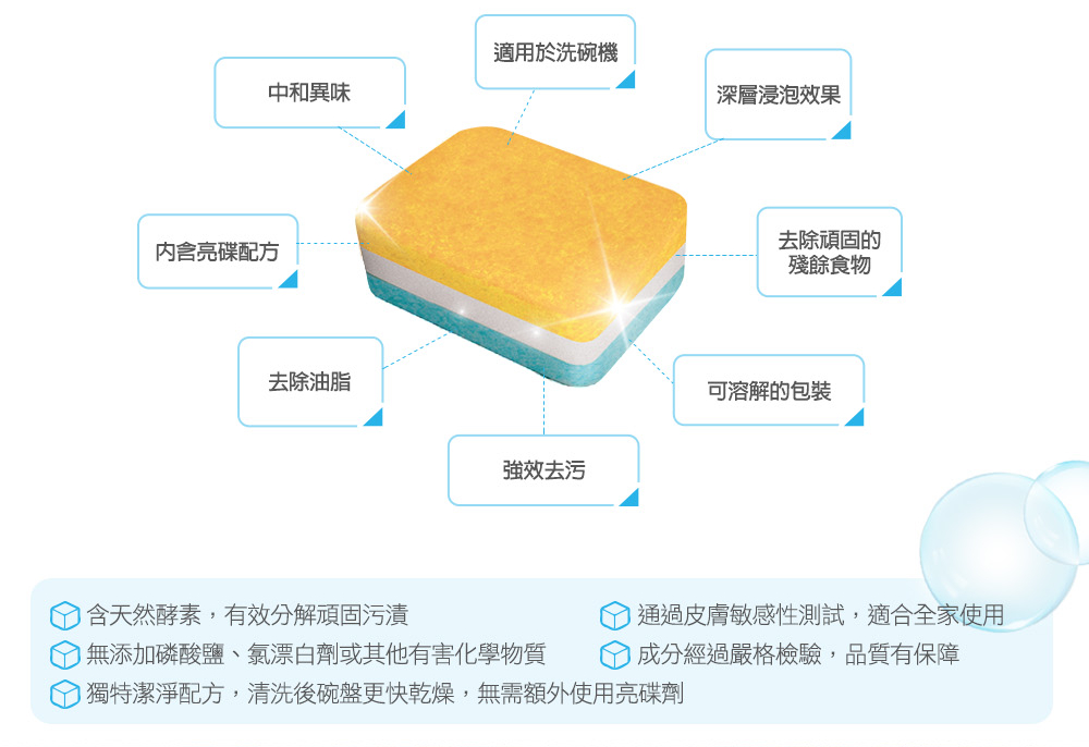 ★ 台灣氣候潮濕,洗碗錠需儲放在室溫30度C一下環境,以避免洗碗錠產生氧化發生