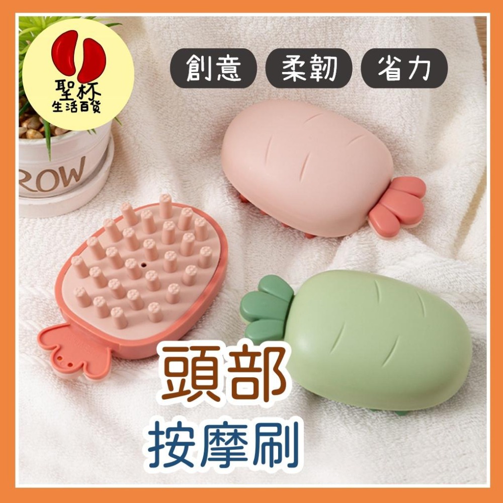頭部按摩刷【聖杯生活台灣現貨】可愛蘿蔔造型 洗頭刷 頭部按摩器 頭部清潔刷 經絡穴位 按摩 軟膠梳子 按摩梳 乾濕兩用