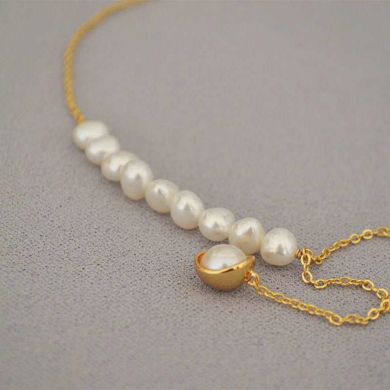 鍊長: 38+5公分延長鏈,吊墜長約5公分 材質: 天然巴洛克珍珠,黃銅鏈條鍍18K金