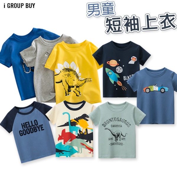 【i揪團】G06-1(現貨)男童短袖上衣 恐龍圖案 火箭圖案 圓領 短袖 T恤 兒童上衣