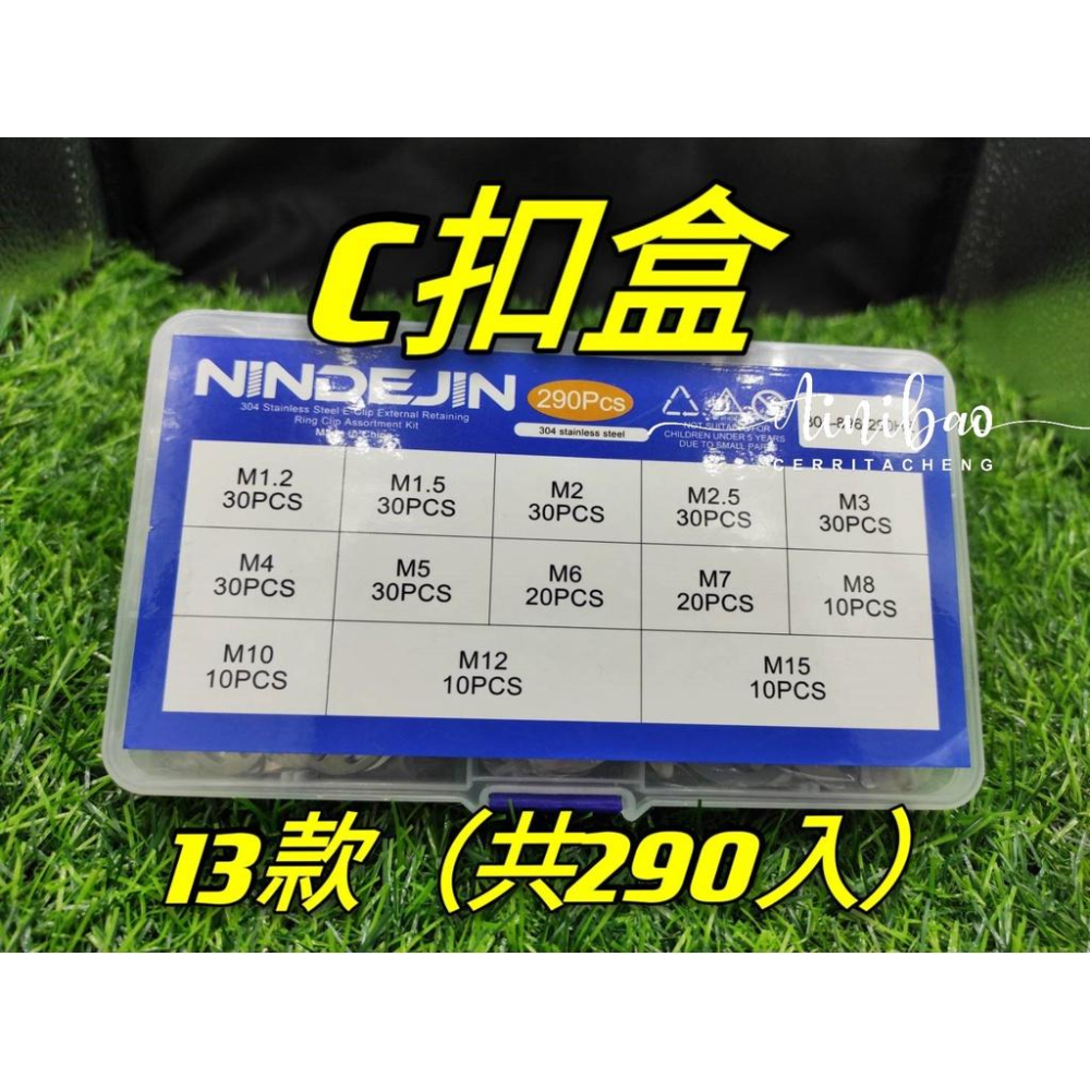 C扣盒 E扣 E卡簧 固定扣 C型環 檔圈 C形扣環 彈簧扣 提供給尺寸不確定或者需要一次購買多尺寸的您 這款盒裝有分格尺寸12種(共290PS) M1.2,30PS M1.5,30PS M2,30PS M2.5,30PS M3,30PS M4,30PS M5,30PS M6,20PS M7,20PS M18,10PS M10,10PS M12,10PS M15,10PS 詳細請參考圖片 材質:304不銹鋼