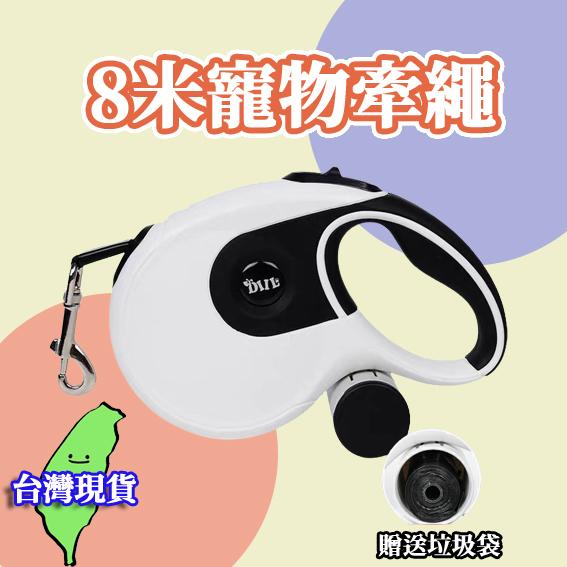【台灣現貨】狗牽繩 寵物牽繩 長牽繩 超長牽繩 狗繩 8米自動伸縮狗鍊 狗繩牽繩 中大型犬(內附垃圾袋)