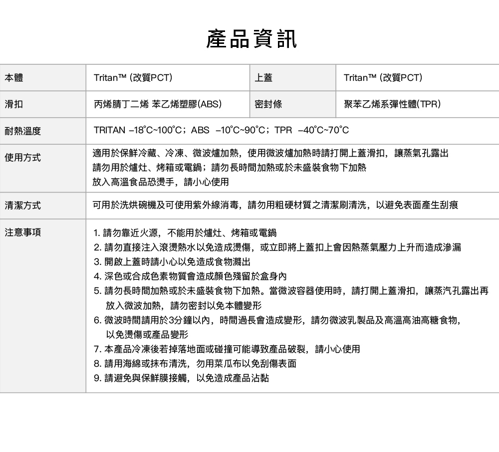 .材質:Tritan™ +丙烯腈-丁二烯-苯乙烯共聚物(ABS)+聚苯乙烯系彈性體(TPR)